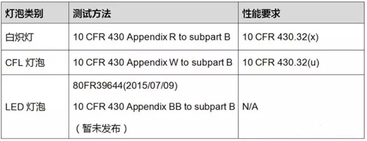 當前LED、CFLs、白熾燈適用的DOE法規(guī)文件號如下: