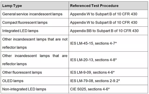 NOPR提議發(fā)布的測試方法主要針對除了LED、CFLs及白熾燈以外的,法規(guī)目前還沒有覆蓋的帶E26燈頭(Medium base)的燈泡產(chǎn)品。主要包括初始光通量,輸入功率,光效,功率因數(shù)及待機功耗測試。同時,為了更好的體現(xiàn)法規(guī)已經(jīng)涵蓋的白熾燈、CFLs和LED燈泡的性能,DOE也澄清了相關(guān)測試方法及樣品方案的參考文件。