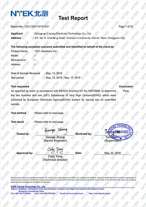 北測檢測NTEK實驗室最新REACH 201測試報告實例