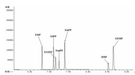 根據(jù)試樣中被測物質(zhì)含量,選定適宜濃度標(biāo)準(zhǔn)工作液,使待測樣液中每種鄰苯二甲酸酯的響應(yīng)值均在儀器檢測的線性范圍內(nèi)。如果樣液的檢測響應(yīng)值超出儀器檢測的線性范圍,可適當(dāng)稀釋后再進(jìn)行測定。