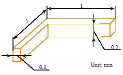 在溫度20±5℃,露點≤-25℃的環境下。將充滿電的電芯拆解,并將卷芯取出外殼。L形鎳片(0.2mm高,0.1mm寬,每邊1mm長),如下圖: