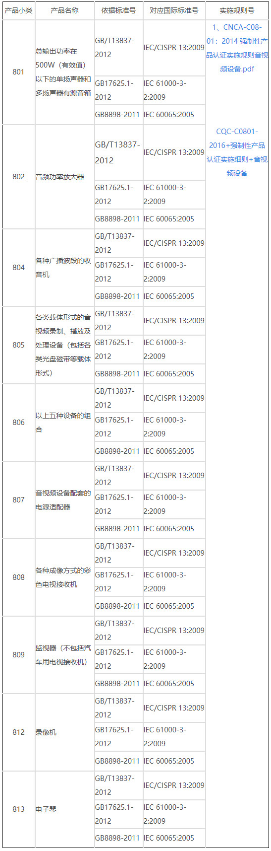 國家認(rèn)監(jiān)委對音視頻設(shè)備實施規(guī)則進行了修訂,《強制性產(chǎn)品認(rèn)證實施規(guī)則 音視頻設(shè)備》(編號:CNCA-C08-01:2014,以下簡稱新版規(guī)則)已于2014年7月16日正式發(fā)布,并自2014年9月1日起實施,3C新版規(guī)則替代了《電氣電子產(chǎn)品類強制性產(chǎn)品認(rèn)證實施規(guī)則 音視頻設(shè)備》。
