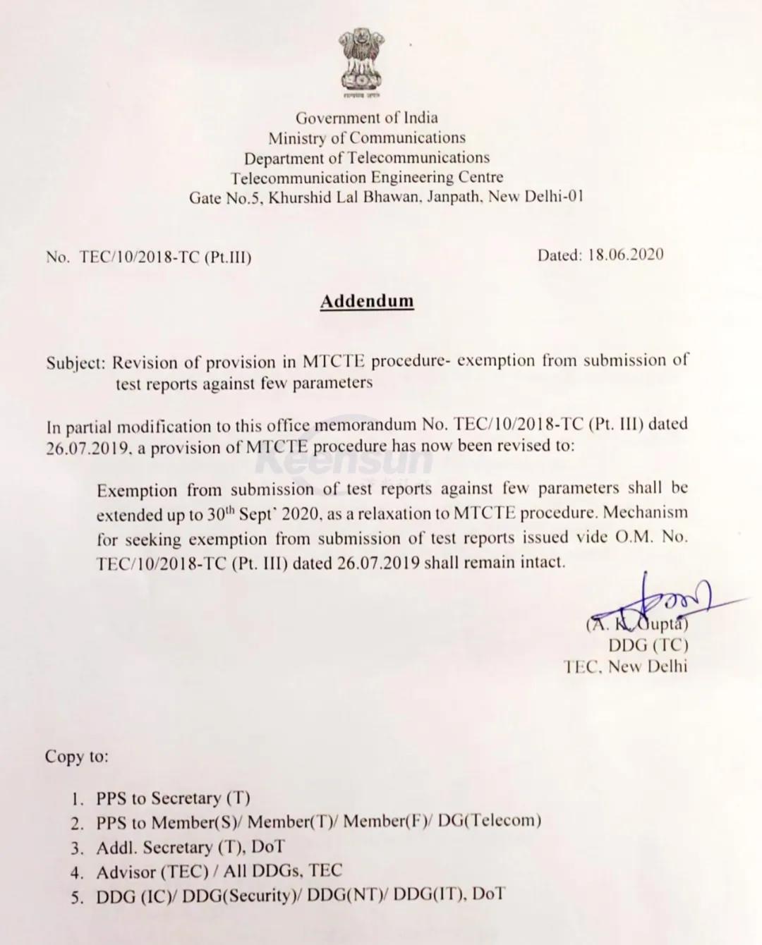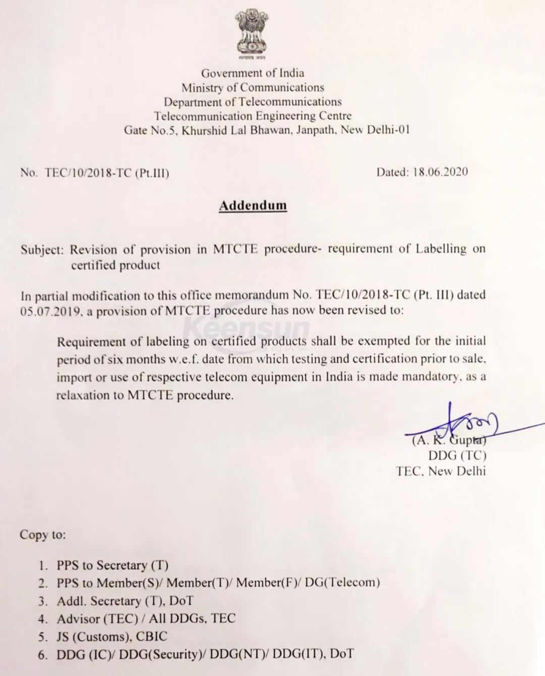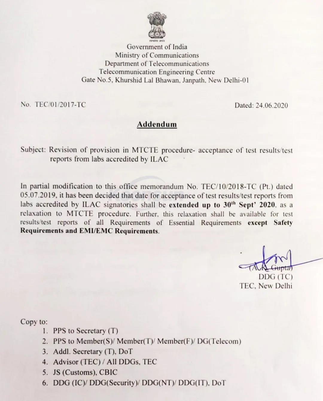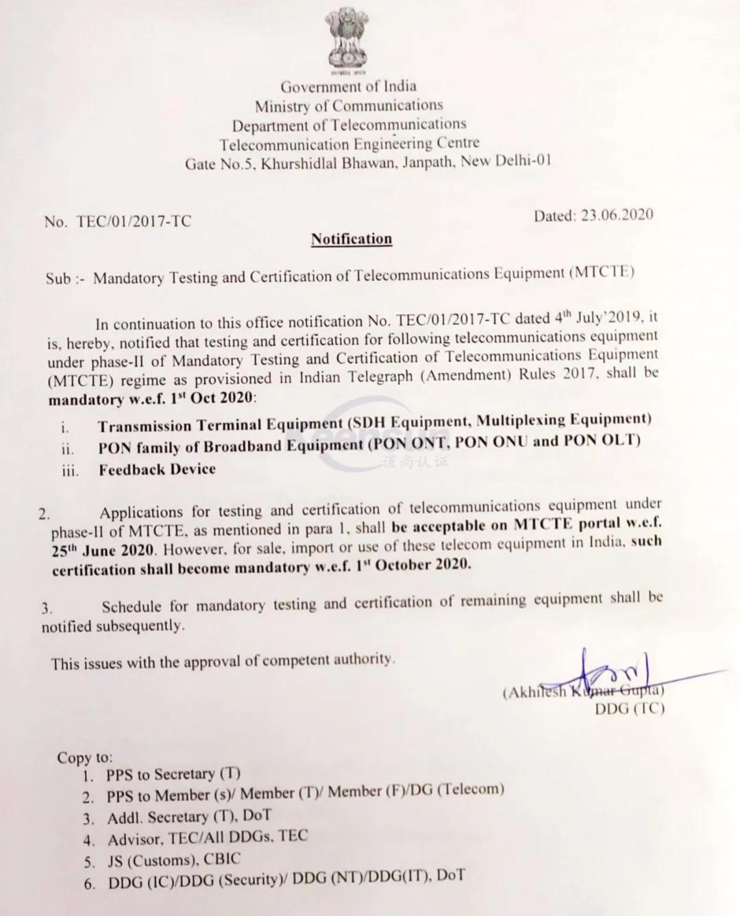 印度MTCTE認證法規更新