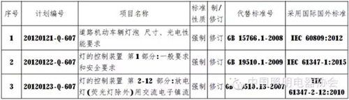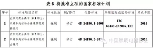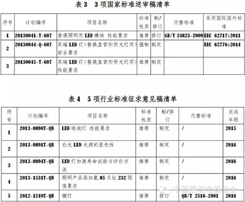 全國照明電器標(biāo)準(zhǔn)化技術(shù)委員會電光源及其附件分會已順利完成了2014年-2015年的工作計劃和國標(biāo)委、中輕聯(lián)下達的標(biāo)準(zhǔn)制、修訂及其他工作任 務(wù)。分會完成了22項國家標(biāo)準(zhǔn)、2項行業(yè)標(biāo)準(zhǔn)報批稿上報工作(見表1、表2);完成了3項國家標(biāo)準(zhǔn)送審稿、5項行業(yè)標(biāo)準(zhǔn)征求意見稿(見表3、表 4);2014-2015年國家標(biāo)準(zhǔn)委批準(zhǔn)和待批準(zhǔn)的國家標(biāo)準(zhǔn)的制/修訂計劃項目(見表5、表6);2014年批準(zhǔn)發(fā)布了5項國家標(biāo)準(zhǔn)(見表7)。