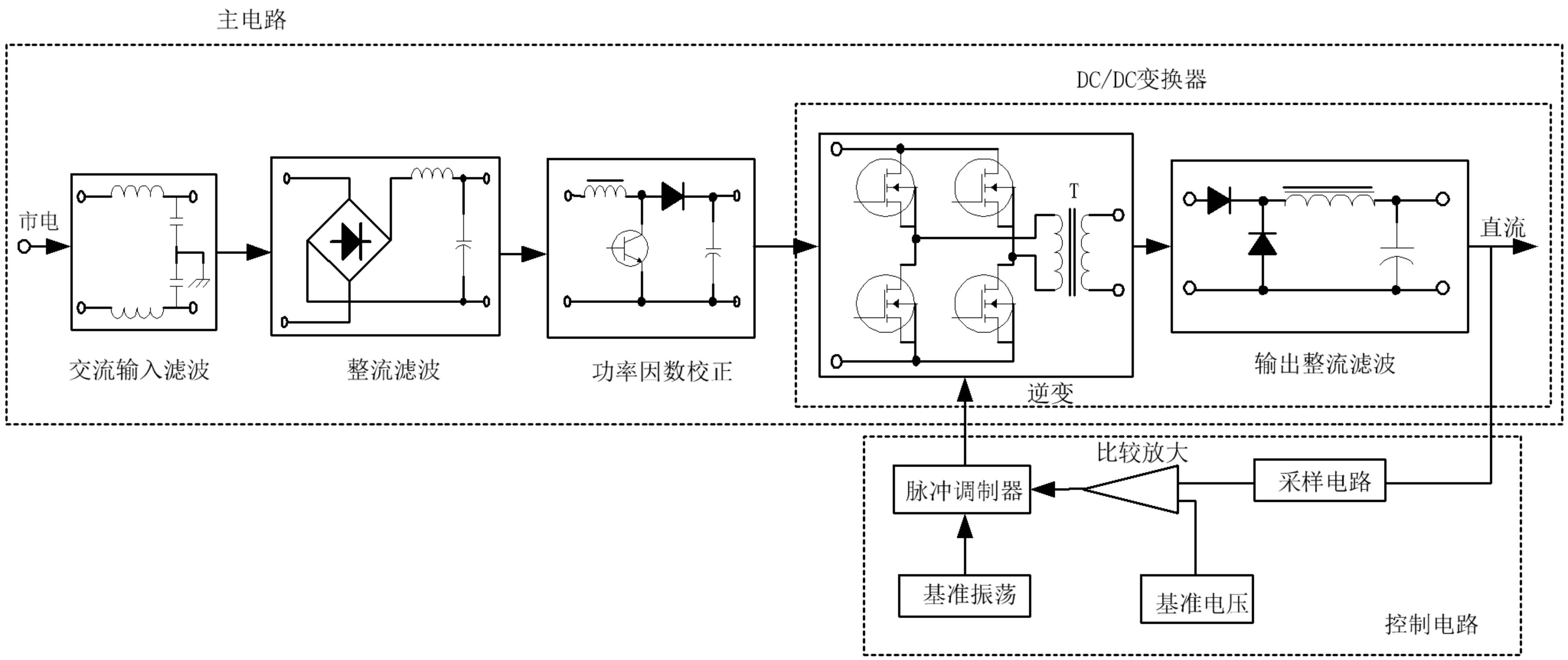 最常見的AC-DC電源的功能框圖如下圖所示,包含交流輸入濾波、整流濾波,功率因數(shù)校正、DC-DC變換器、控制電路等模塊,市場上的一些廉價電源,往往偷工減料,比如:把功率因數(shù)校正模塊和交流輸入濾波模塊刪減掉,輸出整流濾波模塊使用盡量少的輸出濾波電容,使用質(zhì)量等級低的元器件,元器件降額余量不足等問題。這樣的電源買回去,不但有可能給用電設(shè)備的壽命造成影響,甚至有可能引發(fā)火災(zāi),導(dǎo)致嚴重后果。