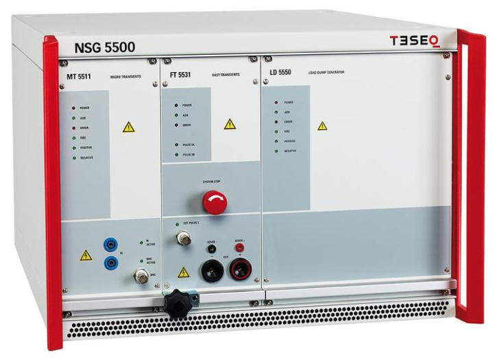 經過多年的沉淀,北測性能實驗室已初步建立了車載模塊抗電氣負荷的測試能力,擁有了業內領先的NSG5500汽車瞬變抗擾度測試系統,可以滿足標準ISO7637、ISO17025/GBT 28046及絕大部分車廠的企標中的要求。可以模擬的場景包括不限于:模擬發電機調節器失效引起的發電機輸出電壓上升到高于正常電壓;模擬輔助起動時向DUT輸入的過高電壓;模擬直流供電下出現的紋波電壓;檢驗車載模塊在不同的電壓驟降下的復位性能;模擬車載模塊在車輛啟動時的性能;模擬發生拋負載現象時產生的瞬態等。可以實現的典型波形包括但不限于以下ISO7637-2標準中所提到的波形: