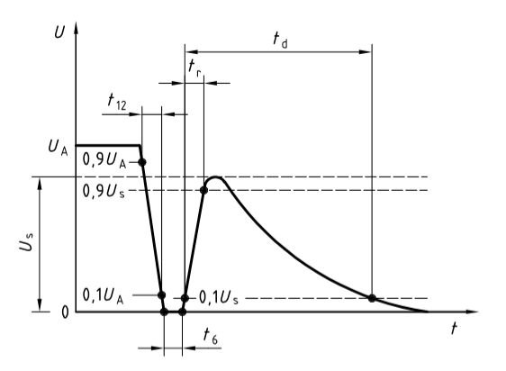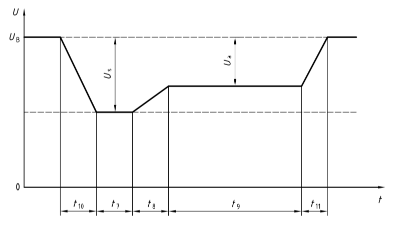 試驗脈沖P4講述的是由于內燃機發動機的起動電路的接通而引發車輛電源系統的電壓跌落現象。脈沖P4的波形如下圖所示:這是一個跌落電壓過半,持續時間為幾秒至幾十秒的跌落過程。在ISO7637-2標準里主要考核被試設備在跌落過程中誤動作情況,尤其考核帶微處理器的設備有沒有出現數據丟失和程序紊亂的情況。