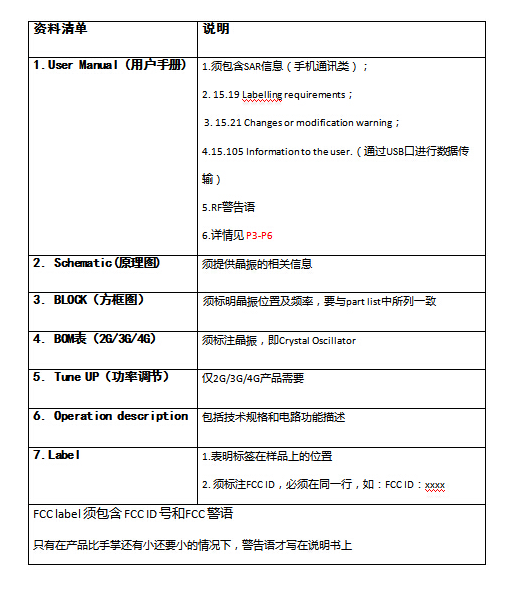 申請所需FCC ID所需提交資料清單及說明
