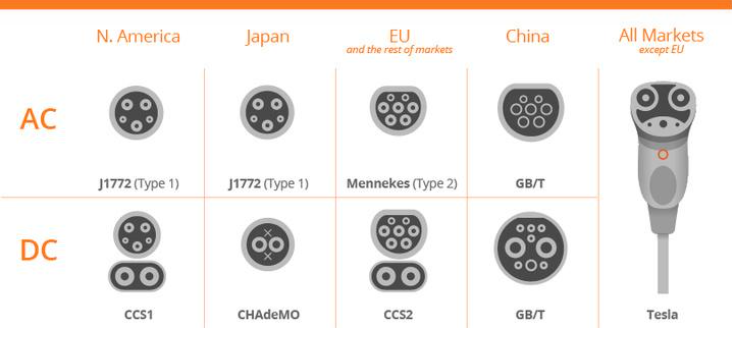 交流充電槍主要分三種,type1、type2、GB/T,也可以叫做美標(biāo)、歐標(biāo)跟國(guó)標(biāo)。特斯拉有自己的標(biāo)準(zhǔn)充電接口,不過(guò)迫于壓力,特斯拉也視市場(chǎng)情況開(kāi)始改變自己的標(biāo)準(zhǔn)來(lái)使自己的汽車(chē)更加適應(yīng)市場(chǎng)了,就像國(guó)產(chǎn)特斯拉必須配備的是國(guó)標(biāo)充電口。