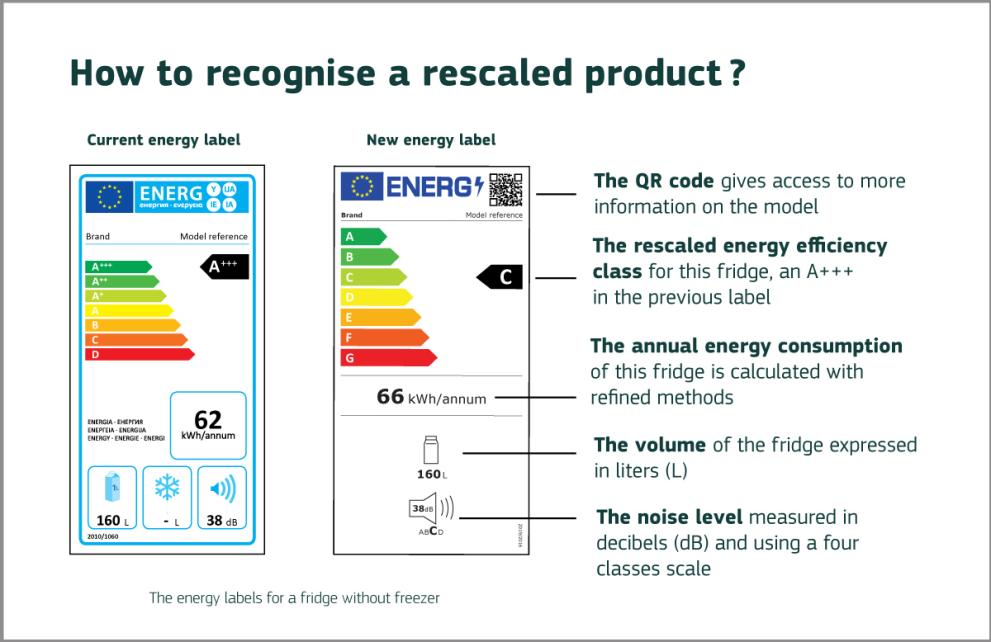 由于越來越多的節能產品的發展,并且由于A++和A+++之間的差異對消費者來說不太明顯,歐盟能源標簽類別將逐步調整,重新引入更簡單的A到G量表。例如,顯示 A+++ 能效等級的產品在重新縮放后可能會變成 B 級或更低,而其能耗沒有任何變化。A類最初將是空的,以便為開發更節能的模型留出空間。