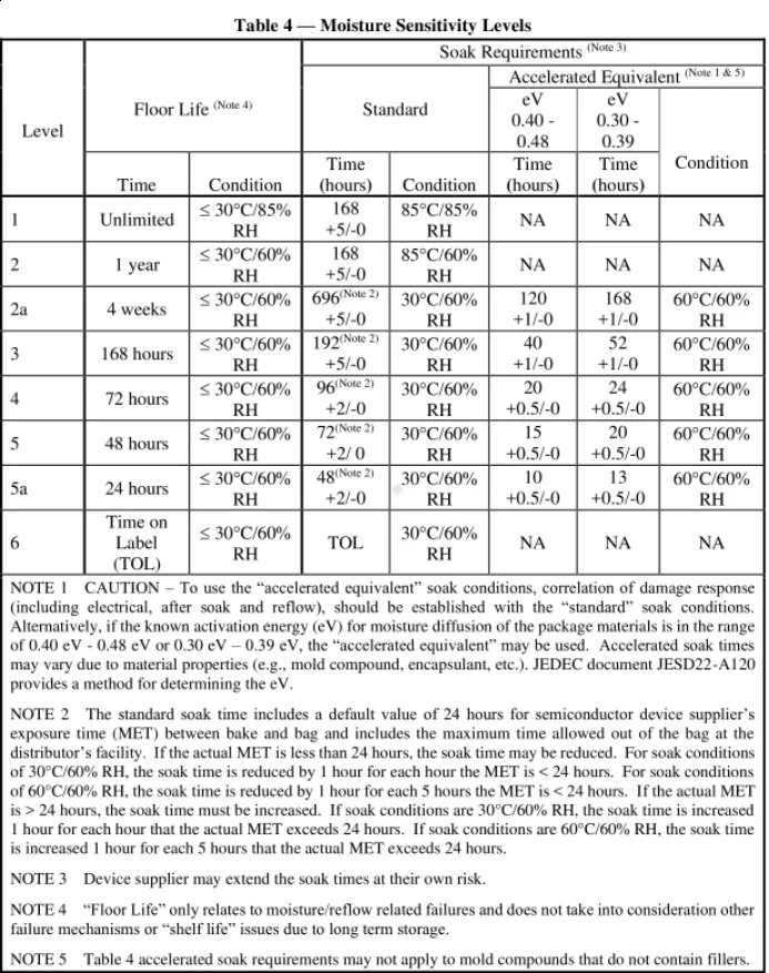 什么是濕度敏感等級 MSL (Moisture Sentivity levels)?