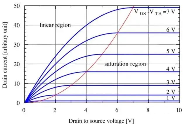 如下圖所示為增強(qiáng)型N溝道MOS輸出特性。