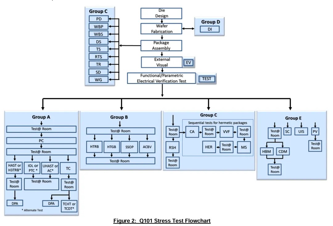 AEC Q101標(biāo)準(zhǔn)是分立半導(dǎo)體器件(依產(chǎn)品類型、封裝形貌及取樣數(shù)量的要求)執(zhí)行并通過的必要測試項(xiàng)目。