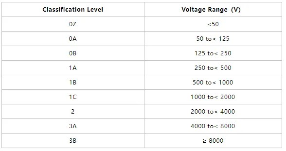 被動(dòng)元器件HBM ESD靜電敏感度等級(jí),參考AEC-Q200-002標(biāo)準(zhǔn)等級(jí)如下表。
