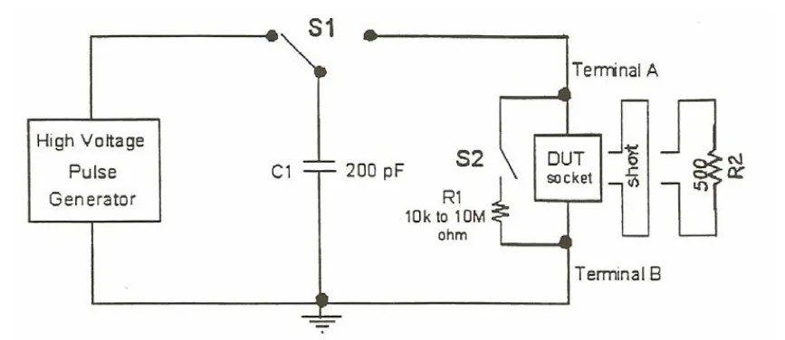 CDM ESD測(cè)試設(shè)備簡(jiǎn)化示意圖