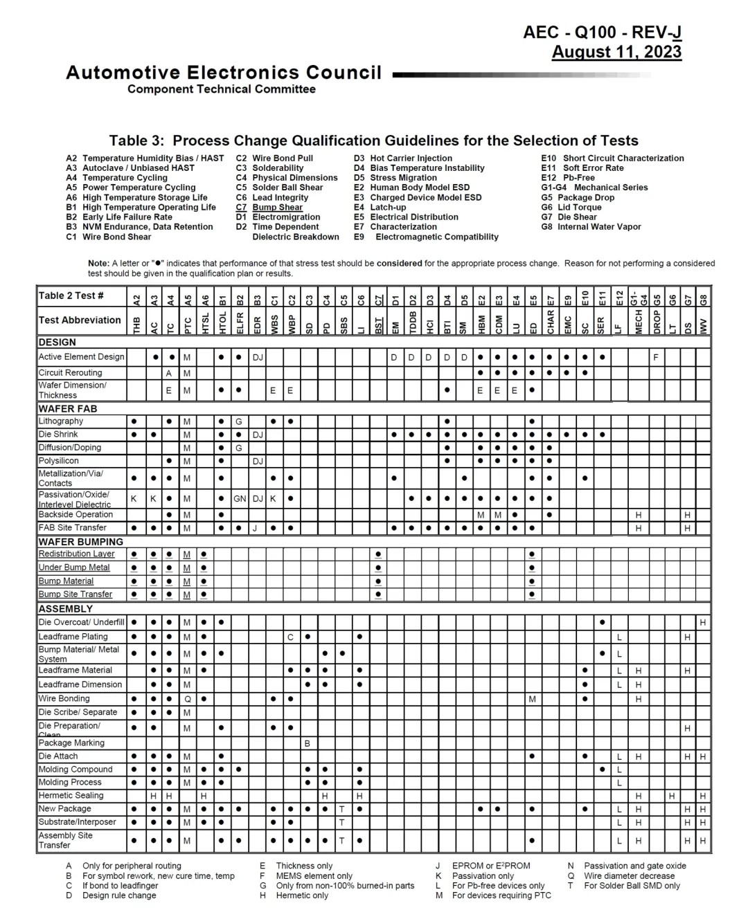 AEC-Q100是汽車電子委員會(AEC)制定的一系列標準之一,專為汽車電子組件的質量認證而設計。當某款車規芯片發生變更時,此時需根據AEC-Q100 3.2.2的要求,執行必要的測試項目,以確保變更后的芯片能夠滿足車規要求。