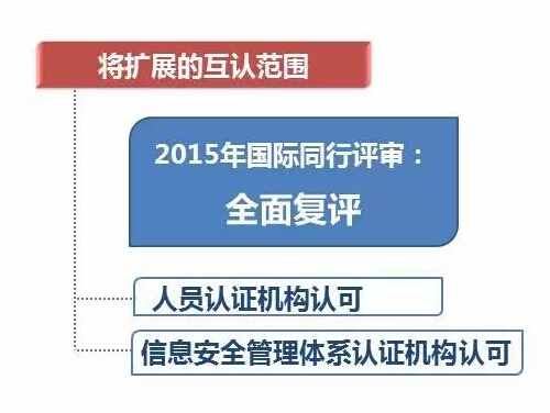 2015年,CNAS接受?chē)?guó)際同行評(píng)審對(duì)我們已經(jīng)加入互認(rèn)的認(rèn)可制度的全面復(fù)評(píng)。同時(shí),我們還新申請(qǐng)擴(kuò)展互認(rèn)范圍,包括信息安全管理體系認(rèn)證機(jī)構(gòu)認(rèn)可和人員認(rèn)證機(jī)構(gòu)認(rèn)可兩項(xiàng)認(rèn)可制度。