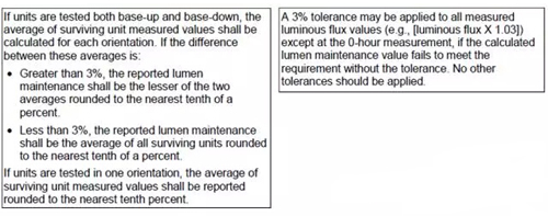 對于固態(tài)燈泡的流明維持將和V1.1要求一致,主要指上報值的規(guī)則及3%的公差使用。此項在草稿1中被遺漏了。如下圖所示: