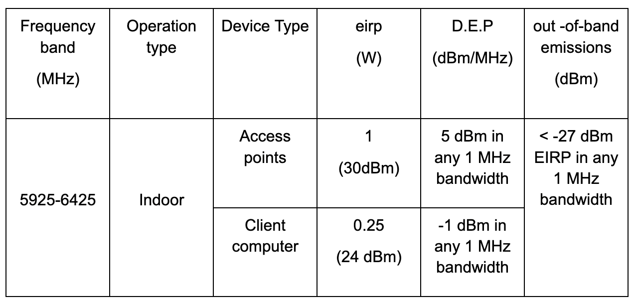 此外,在自由頻譜模式下,在5925-6425MHz頻段運行的極低功率WAS/RLAN系統必須遵守以下條件: