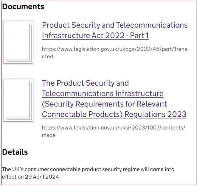 1. 英國產品安全和電信基礎設施(產品安全)PSTI法案 The UK Product Security and Telecommunications Infrastructure (Product Security) regime.