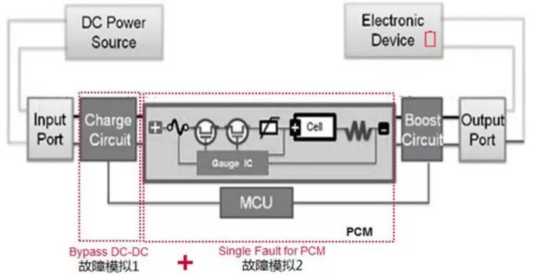UL 2056要求在排除移動電源內(nèi)部的調(diào)壓電路后,還需要設(shè)計至少兩層保護,以保證其中一層保護失效后,還有另一層保護電池不受過充電的影響,而引起安全事故。