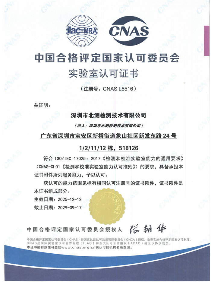 CNAS授權(quán)資質(zhì)中文